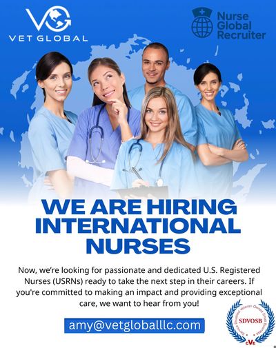 Nurse Global Recruiter is affiliated to Vet Global LLC and Nurse Contact that connect qualified nurses with employers through direct hire or staffing placements, and offer efficient and compliant visa processing.